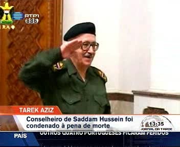 Um tribunal do Iraque sentenciou à pena capital Tareq Aziz, antigo ministro dos Negócios Estrangeiros e vice-primeiro-ministro de Saddam Hussein. Actualmente com 74 anos e, ao que se diz, gravemente doente depois de ter sofrido um acidente vascular-cerebral, Aziz foi condenado à morte por enforcamento, ”pelo seu papel na eliminação dos partidos religiosos xiitas” durante o regime do ditador iraquiano.
