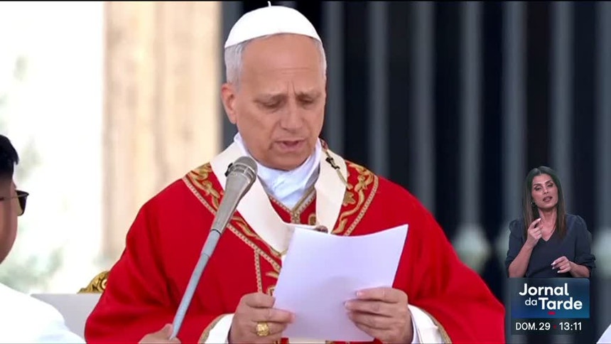 A celebração de hoje começou com uma procissão de cardeais, bispos, padres e leigos a entrar na praça carregando ramos de oliveira e folhas de palmeira, alguns intricadamente trançados. Pararam junto ao obelisco central, onde Leão XIV proferiu uma oração de abertura, e depois seguiram em procissão em direção ao altar para dar início à missa.