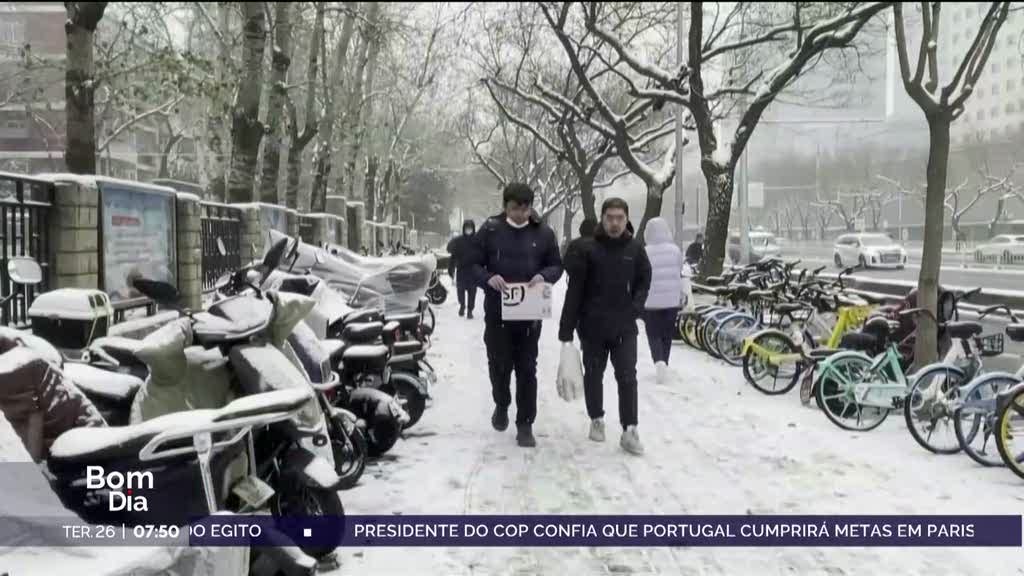 Na China, o frio na cidade de Pequim ultrapassou um recorde com mais de 70 anos. As temperaturas atingiram mínimos históricos com os termómetros a registar 40 graus abaixo de zero em algumas zonas da capital chinesa. O mês de dezembro registou mais de 300 horas de temperaturas abaixo de zero, o valor mais elevado desde 1951.