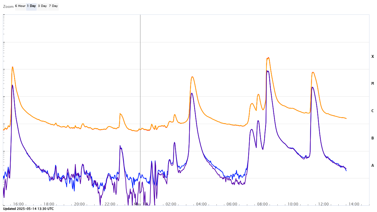 Grafico de emissões de Raios X emitidos pelas tempestades solares | Fonte: NOAA