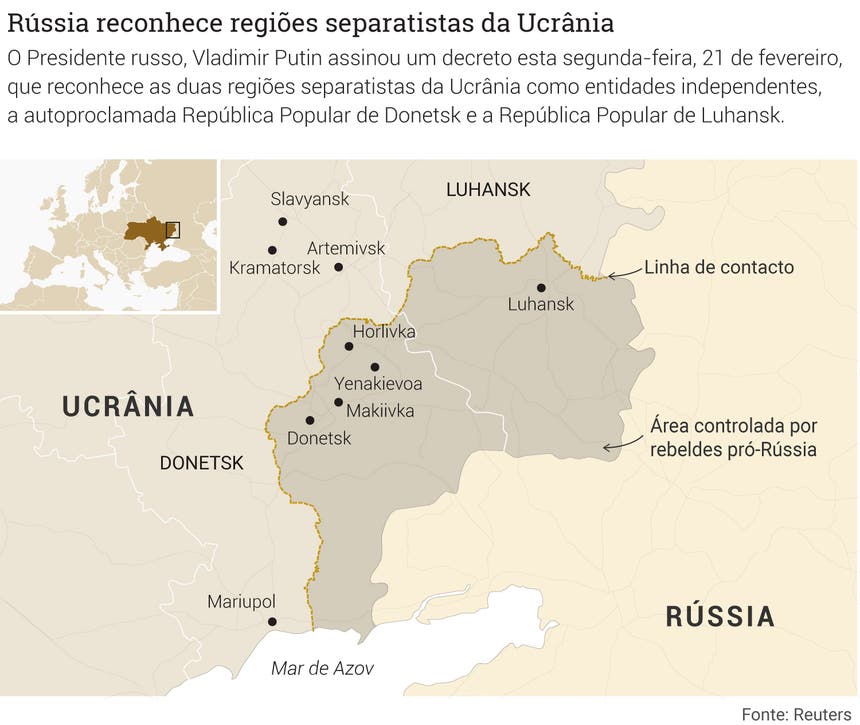 O presidente da Ucrânia, Volodymyr Zelensky, acusa a Rússia de romper com os acordos feitos entre os dois países e de ser a única responsável pela situação atual. Trata-se de duas regiões separatistas pró-russas que não querem fazer parte da Ucrânia. A decisão do presidente russo, Vladimir Putin, está a ser encarada como o abrir de portas a uma invasão da Ucrânia em larga escala.
