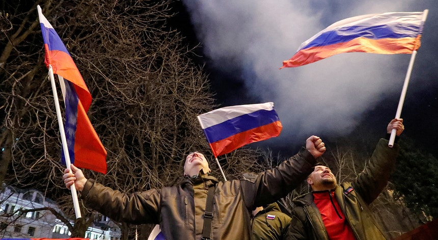 8h34 - Festejos em Donetsk acolhem reconhecimento russo da independência