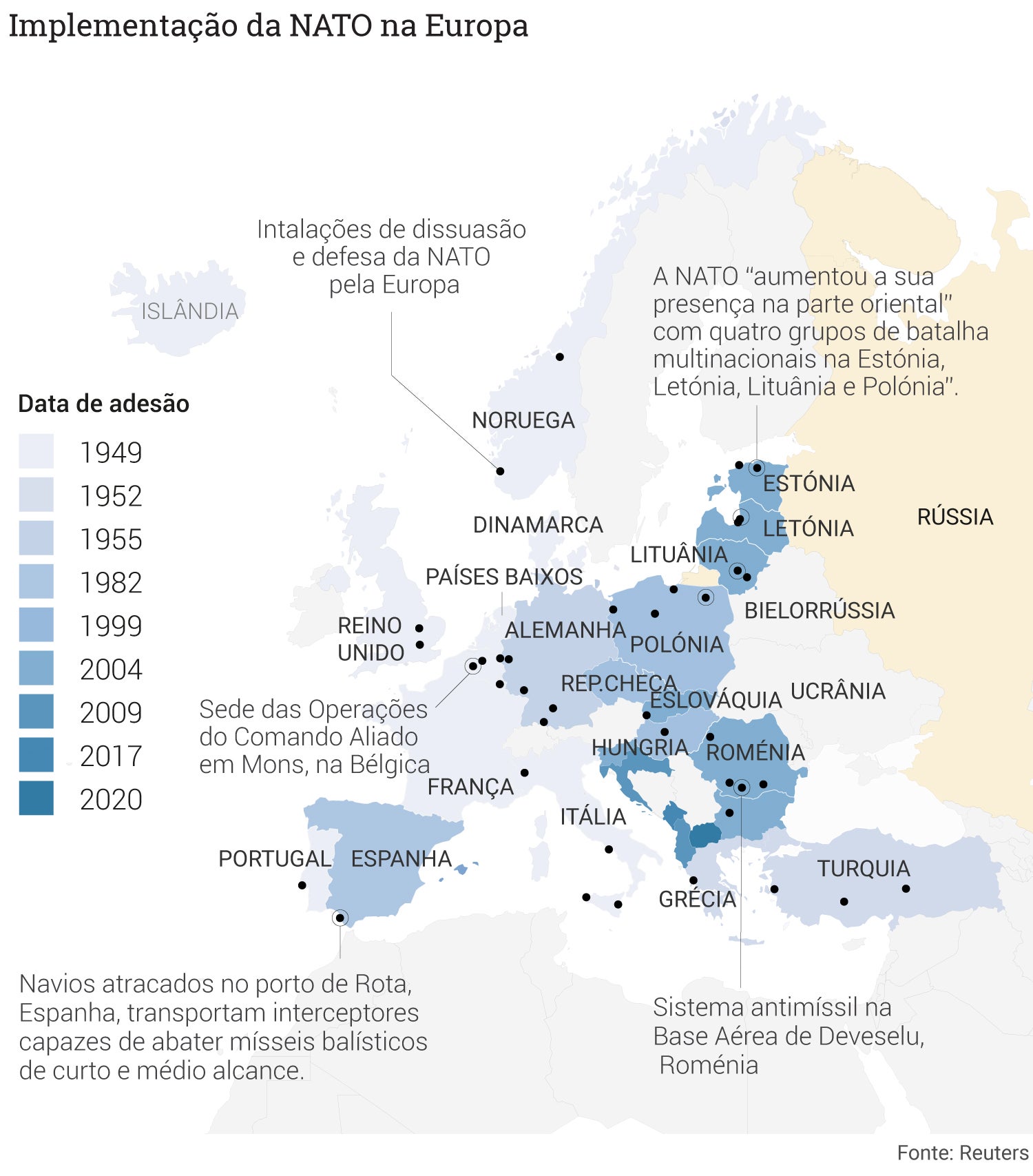 “Vimos que ele [Putin] reconheceu essas regiões separatistas do leste da Ucrânia e pelos relatórios já podemos dizer que ele enviou tanques e tropas. A partir destas informações, podemos concluir que a invasão da Ucrânia começou”, disse o ministro.
