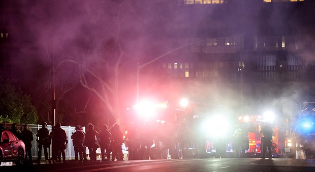 A polícia de Los Angeles informou que deteve pelo menos 56 pessoas em dois dias e que três dos seus membros sofreram ferimentos ligeiros. As autoridades denunciaram "ajuntamentos ilegais" e acusaram alguns participantes de atirarem projéteis de betão, garrafas e outros objetos contra os agentes.