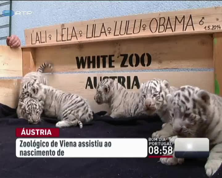 Nasceram 5 tigres brancos no jardim zoológico de Viena de Áustria. Foi no dia 25 de abril. Agora, já com um mês, foram apresentados ao público. Um dos tigres foi batizado com o nome do presidente dos Estados Unidos. Chama-se Obama. Os tigres brancos são originários da Índia e do Bangladesh.