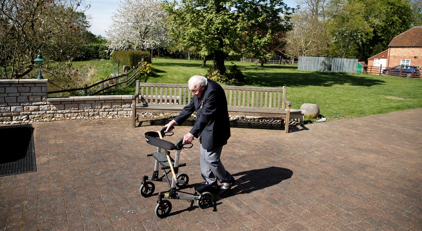 Aos 99 anos, Tom Moore, capitão britânico que combateu na II Guerra Mundial, sobrevivente de cancro, descreveu esta semana uma centena de voltas ao seu próprio jardim, numa iniciativa que lhe permitiu angariar mais de 12 milhões de libras, o equivalente a 13,7 milhões de euros, para o serviço público de saúde do Reino Unido. “O Sol brilhará outra vez”, clamou.