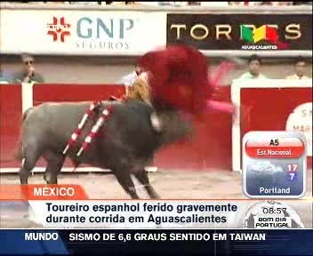 O toureiro espanhol José Tomás foi colhido por um touro. Durante um espectáculo no México sofreu uma perfuração na coxa esquerda. O toureiro já começou a respirar sozinho e apresenta melhoras significativas.