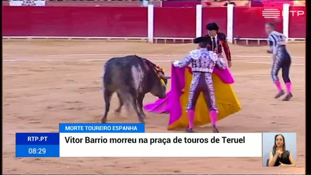 Vitor Barrio, de 29 anos, recebeu cuidados imediatos na praça de touros de Teruel, mas não resistiu aos ferimentos.