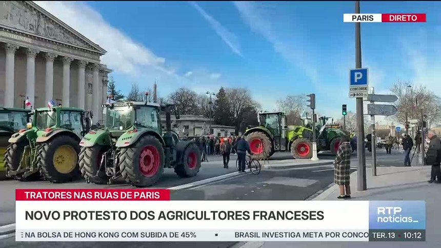 Cerca de 350 tratores da Federação Nacional dos Sindicatos Agrícolas (FNSEA) e da Juventude Agrícola, chegaram às primeiras horas da manhã a Paris, vindo do norte de França. Percorreram as principais artérias da cidade, como os Campos Elísios, até chegarem à Assembleia Nacional, onde se reuniram num cordão com 1,2 quilómetros. Rosário Salgueiro | correspondente da RTP em Paris