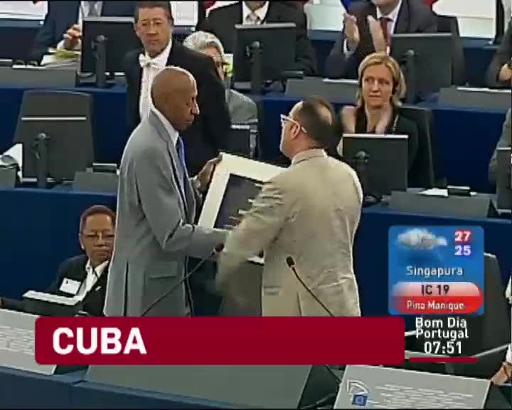 O Prémio Sakharov foi finalmente entregue ao dissidente cubano Guillermo Fariñas. Ele já tinha sido galardoado há 3 anos. Mas só agora conseguiu receber o prémio. A cerimónia decorreu no Parlamento Europeu. o dissidente cubano dedicou o prémio à mãe. Guilherme Fariñas fez 23 greves de fome em protesto contra a repressão das autoridades cubanas em relação aos opositores do regime dos irmãos Castro