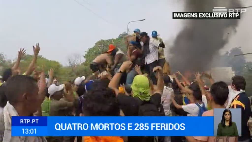 A população que chegou à fronteira como escudo alinhou-se depois como cordão. Os disparos da Polícia venezuelana tinham começado uma hora antes.