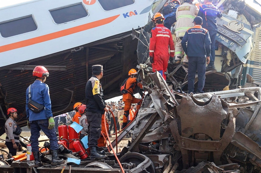 Os acidentes de comboio são frequentes na Indonésia, que tem uma rede ferroviária bastante envelhecida.