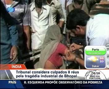 Sete quadros da subsidária indiana da Union Carbide Ltd, empresa norte-americana de químicos, foram condenados a uma pena de prisão de dois anos e ao pagamento de 2100 dólares por “morte por negligência” há 25 anos. A sentença atribui à empresa a autoria moral do crime, mas não refere o principal acusado, um dirigente norte-americano da empresa fugido à justiça. As famílias estão indignadas e anunciaram intenção de recorrer.