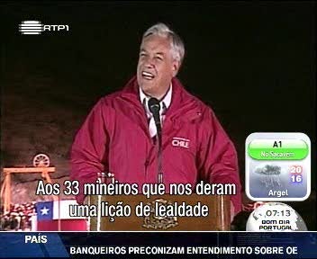 6 de Agosto: o Presidente do Chile, Sebastián Piñera, sai a público e garante que o Governo fará “tudo o que for humanamente possível” para resgatar os mineiros.