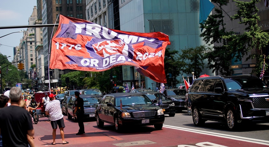Donald Trump ainda não apareceu em público desde o anúncio de Joe Biden. O candidato republicano está à frente numa sondagem já realizada depois da desistência, mas tecnicamente empatado com Kamala Harris.