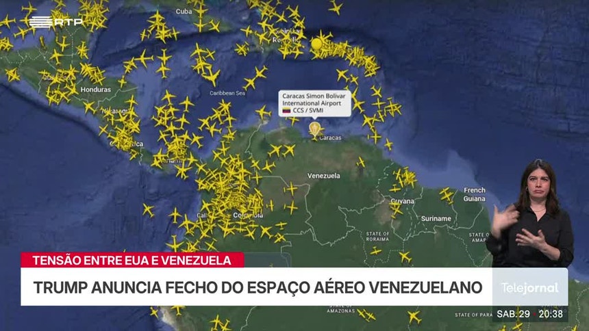 "A todas as companhias aéreas, pilotos, traficantes de drogas e traficantes de seres humanos, considerem que O ESPAÇO AÉREO SOBRE E AO REDOR DA VENEZUELA ESTÁ TOTALMENTE FECHADO", escreveu numa publicação na rede Truth Social.