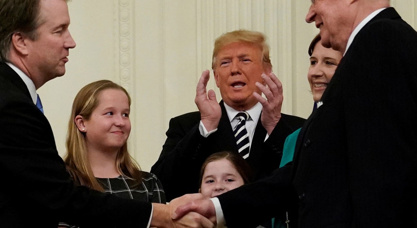 Donald Trump falava na Casa Branca, durante a cerimónia de investidura de Kavanaugh, confirmada no sábado pelo Senado após uma longa batalha política, que reconheceu ter arrancado de "forma diferente de qualquer outro evento de tamanha magnitude".