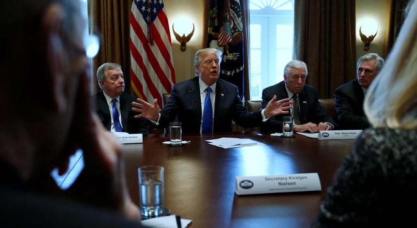 O Presidente dos Estados Unidos pretende encontrar uma solução bipartidária para evitar a deportação de milhares de imigrantes, mas insiste na continuação da construção do muro entre a fronteira dos Estados Unidos e do México.