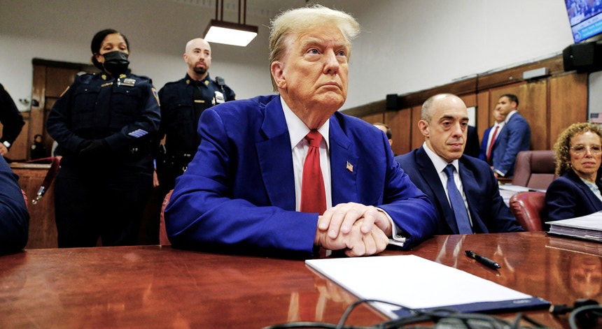 O antigo Presidente dos Estados Unidos está a ser processado por 34 falsificações de documentos contabilísticos que alegadamente foram utilizados para ocultar um pagamento destinado a encobrir um potencial escândalo sexual na reta final da campanha presidencial de 2016.