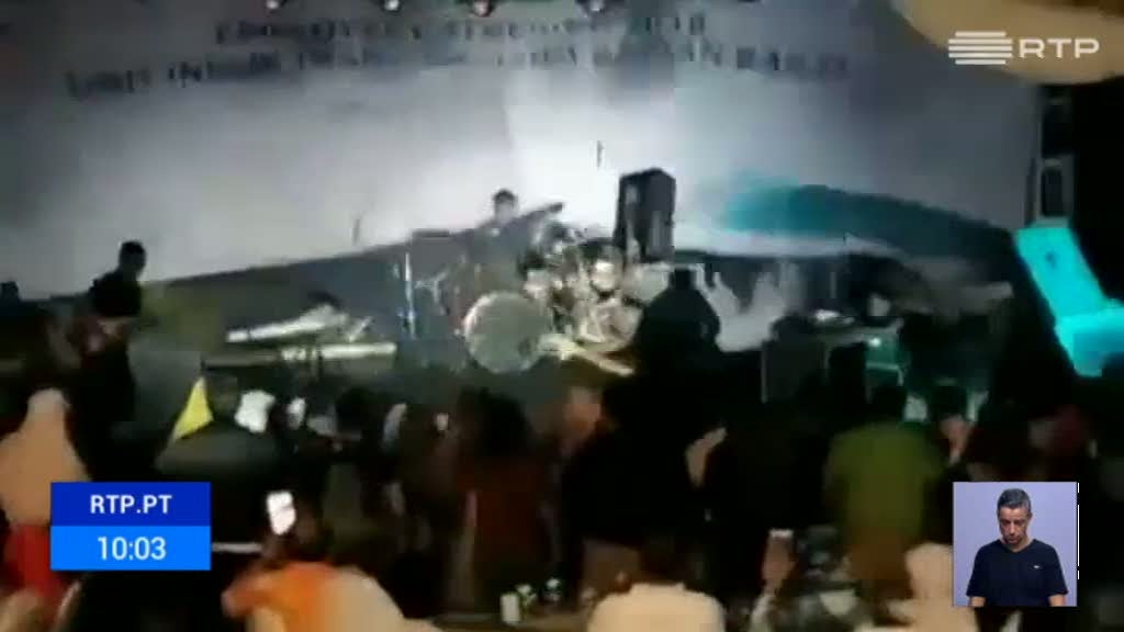 O espetador de um concerto registou em vídeo o momento da chegada da onda gigante. O tsunami apanhou desprevenidos os músicos e a audiência. Dois elementos da banda Seventeen já foram encontrados mortos e três estão desaparecidos.