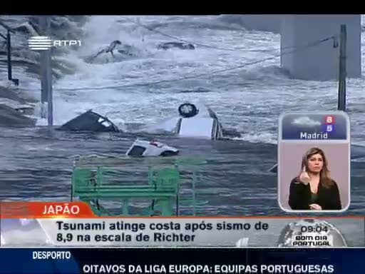 Um sismo de magnitude 8,9 atingiu o norte do Japão quando eram 5.46 da manhã em Portugal Continental. A seguir ao terramoto as zonas costeiras foram atingidas por um tsunami que causou devastação numa vasta zona. Há pelo menos 44 mortos e dezenas de feridos mas o número de vítimas poderá vir a aumentar pois ainda há, pelo menos, quarenta desaparecidos. Alertas de tsunami foram lançados em vinte países da área do Pacífico.