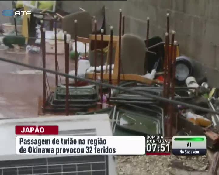 A cidade japonesa de Okinawa está outra vez em alerta máxima por causa de um tufão.Os ventos chegaram a atingir 250 quilómetros por hora. Há registo de pelo menos 32 feridos e muitos estragos.