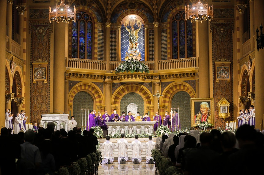 Os restos mortais de Bento XVI, que repousam num caixão triplo, o primeiro feito de madeira de cipreste, o segundo de zinco e o terceiro de carvalho, juntamente com alguns objetos pessoais, foram transferidos nesta quinta-feira para as grutas do Vaticano após o seu funeral.