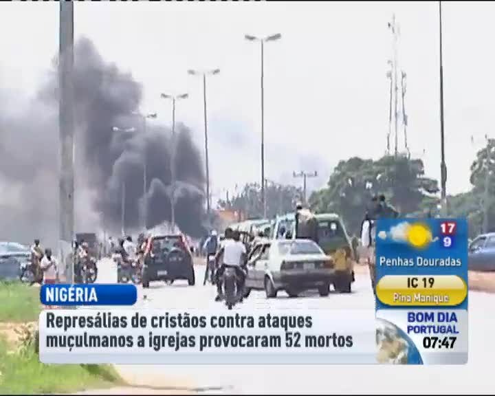 A violência étnica e religiosa no norte da Nigéria fez ontem mais 52 mortos. São vítimas das represálias contra os atentados bombistas a três igrejas no domingo, atribuídos ao grupo islâmico fundamentalista Boko Haram.