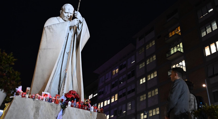 Muitos peregrinos que pretendiam ver o papa Francisco passam, agora, pelo Hospital Universitário Gemelli, onde o líder da Igreja Católica está internado.