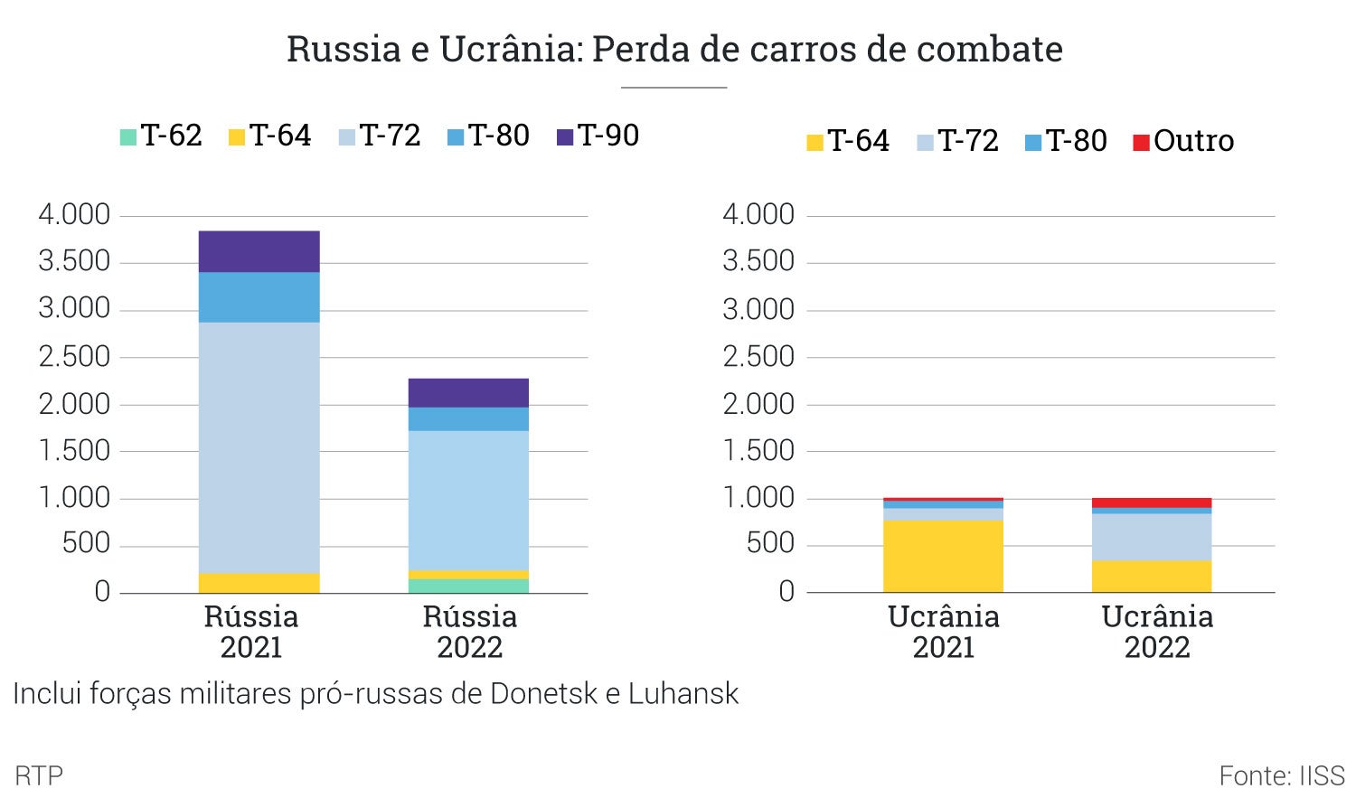 A Federação Russa tem contudo reservas suficientes de carros de combate mais velhos para substituir tais baixas. "A produção industrial prossegue mas permanece lenta, forçando Moscovo a recorrer às suas armas mais velhas como substitutas de atrito", referia o presidente executivo do Instituto, John Chipman no lançamento do relatório Equilibrio Militar sobre as forças armadas do globo.