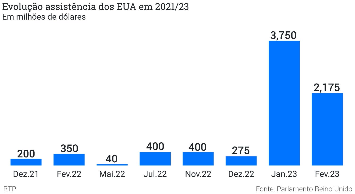 A tendência prosseguiu em alta até janeiro de 2023, quando foi anunciado um pacote de 3.750 milhões de dólares (3.500 milhões de euros), o maior de sempre.