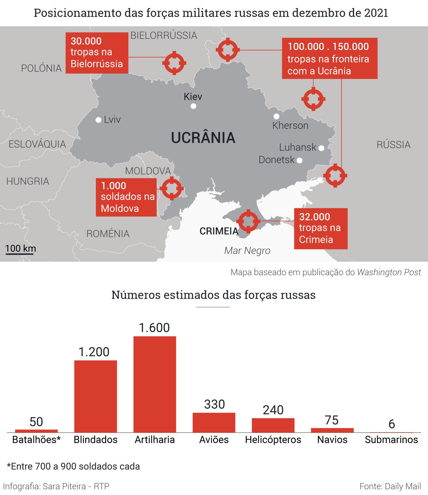 Informação oriunda de um relatório dos serviços secretos norte-americanos, citada por uma fonte da Casa Branca ao Washington Post, revelava que, em finais de dezembro de 2021, a Rússia se preparava para reforçar ainda mais as suas forças, em antecipação da entrada na Ucrânia. "Os planos envolvem movimentos alargados de 100 batalhões táticos, com uma força estimada em 175.000 homens, além de blindados, artilharia e equipamento", referia a fonte, sob anonimato.