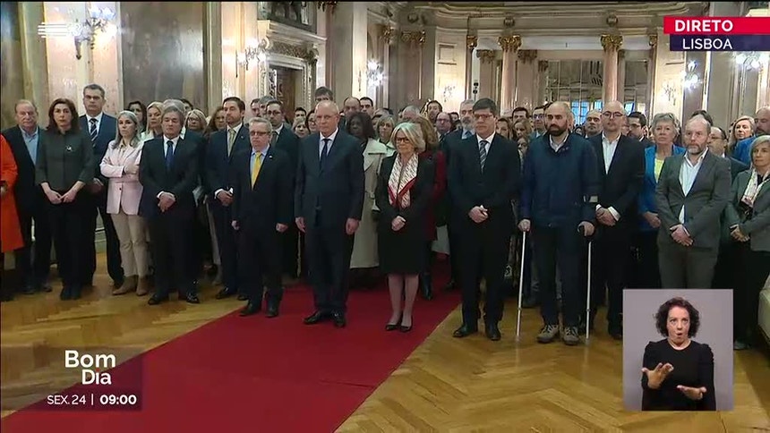 Pelas 9h00 em Lisboa, foram vários os parlamentares que se juntaram, no átrio dos Passos Perdidos, ao presidente da Assembleia da República, Augusto Santos Silva, à ministra adjunta e dos Assuntos Parlamentares, Ana Catarina Mendes, e ao encarregado de negócios da Embaixada da Ucrânia em Lisboa, Volodymyr Kozlov, para um minuto de silêncio pelas vítimas da guerra na Ucrânia. Nesta iniciativa simbólica, na Assembleia da República, só não estiveram presente os deputados do PCP e a deputada única do PAN, Inês de Sousa Real.