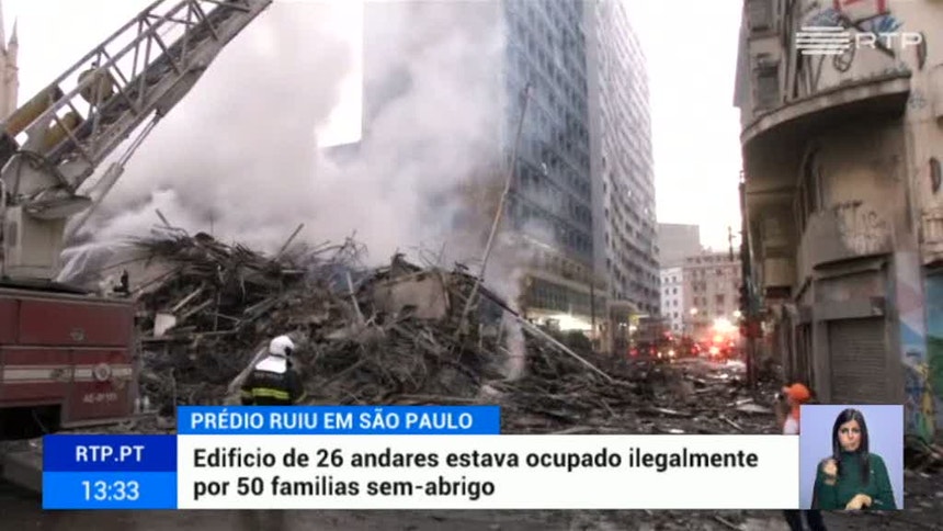 Um prédio em chamas colapsou no Brasil provocando a morte de uma pessoa e ferimentos noutras três. As autoridades temem a existência de mais vítimas, já que várias que viviam ilegalmente no edifício abandonado estão desaparecidas.