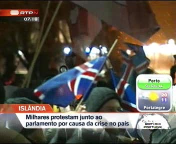 Milhares de pessoas manifestaram-se frente ao parlamento da Islândia. Os manifestantes atiraram ovos e tomate podre contra o edifício onde estavam reunidos os deputados. Eles acusam as elites políticas e económicas pela crise que fez disparar o crédito mal-parado. Mais de um quarto da população islandesa está em risco de ficar sem casa por falta de pagamento. São cerca de 80 mil pessoas num país de 300 mil habitantes.