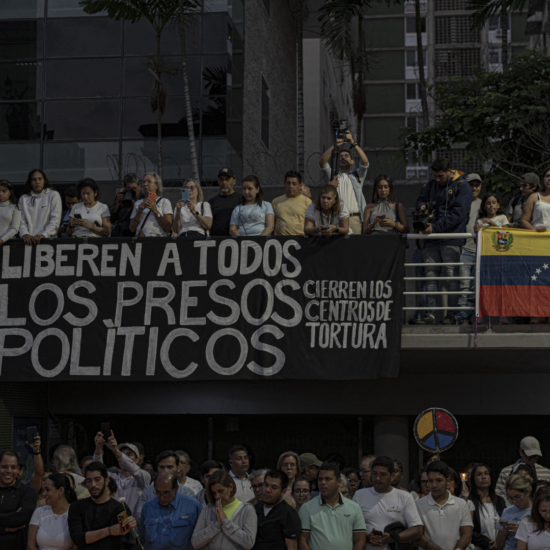 Em Caracas, na noite de quinta-feira, centenas de pessoas fizeram uma vigília e pediram a libertação de vários presos políticos.