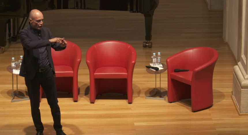 O psiquiatra suíço elogia o projeto português Atlantic Wind Float, um parque eólico construído em alto mar, vinte quilómetros ao largo da costa de Viana do Castelo. Por ano, as três turbinas podem abastecer 60 mil habitações.