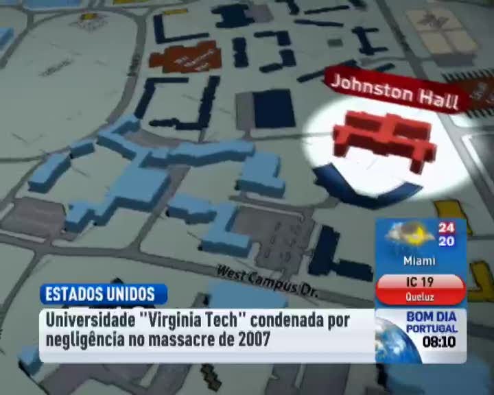 A justiça norte-americana condenou a Universidade Virgina Tech por negligência durante o tiroteio no campus universitário que vitimou 32 pessoas em 2007. O tribunal considerou que a Universidade demorou a alertar estudantes e docentes para a presença do atirador. As duas famílias de vítimas que iniciaram o processo , vão ser indemnizadas. A universidade vai ter de pagar a cada uma cerca de 3 milhões e meio de euros.