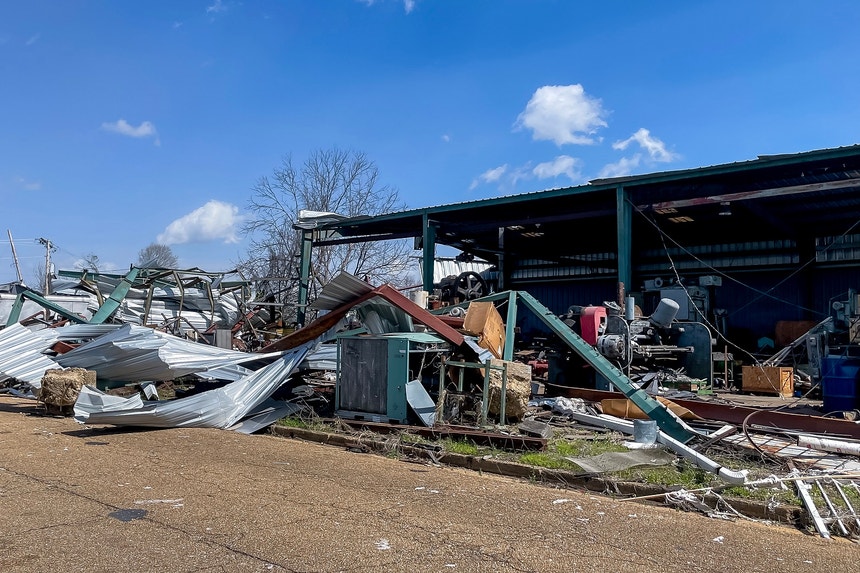 As tempestades no Mississippi arrasaram casas e viaturas e deixaram pelo menos 60 mil pessoas sem eletricidade.