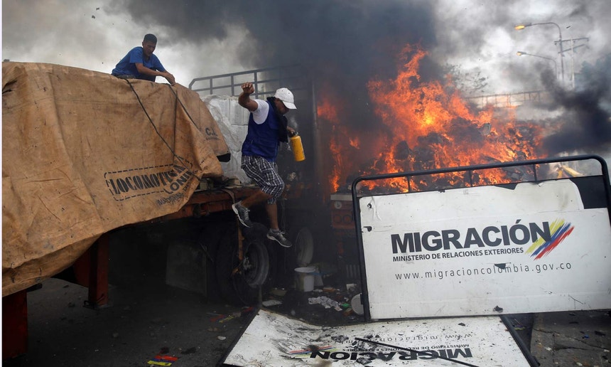 O conteúdo dos camiões com ajuda humanitária na Venezeula será descarregado na Ponte Simão Bolívar e serão transportados em "corrente humana" até à fronteira, revelou a agência de emigração colombiana, citada pela agência Reuters.