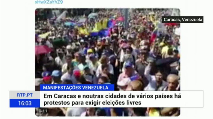 Milhares de pessoas estão nas ruas de Caracas na Venezuela para exigir eleições livres no país.