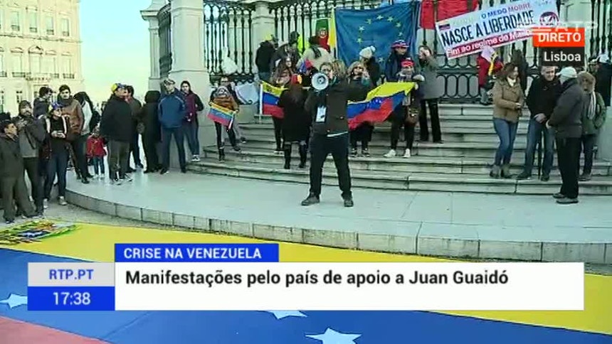 Várias dezenas de pessoas concentraram-se no Terreiro do Paço, em Lisboa, numa manifestação de apoio a Juan Guiadó e contra o regime de Nicolás Maduro.