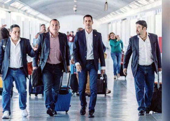 Sergio Vergara e Roberto Marrero - à esquerda e à direita, respetivamente, na fotografia - acompanharam Juan Guaidó no périplo que este realizou, em fevereiro, por países da América Latina, assim como Francisco Sucre, presidente da Comissão de Política Externa da Assembleia Nacional da Venezuela.