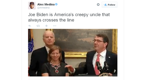 As fotografias e o pequeno vídeo de seis segundos (um vine), de Biden de mãos nos ombros dela a sussurrar ao ouvido de Stephanie, foram suficientes para muitos twitters se referirem ao vice-presidente como "creepy" (bizarro ou arrepiante). Outros riem-se e dizem que o novo responsável pelos exércitos norte-americanos nem sequer consegue evitar que o vice-presidente "ponha as mãos" na sua mulher.