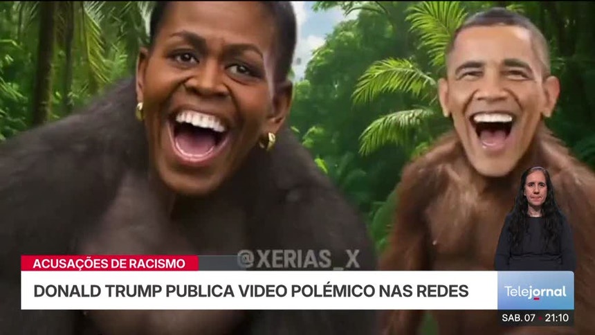 Donald Trump admite ter sido um erro a partilha de um vídeo na sua rede social no qual os Obama surgem representados como macacos.