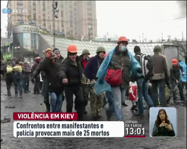 A violência desta manhã, em Kiev, fez, pelo menos, 27 mortos, todos civis. O número de vítimas mortais ainda não está fechado, já que não há sinais de acalmia. Os manifestantes mantêm as barricadas e concentram-se na Praça da Independência, onde já há uma forte presença militar.