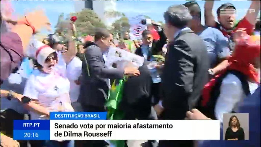 No exterior do Palácio do Planalto registaram-se cenas de violência. Alguns jornalistas foram também agredidos quando discursava Dilma Rousseff.