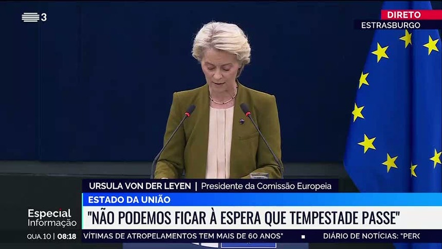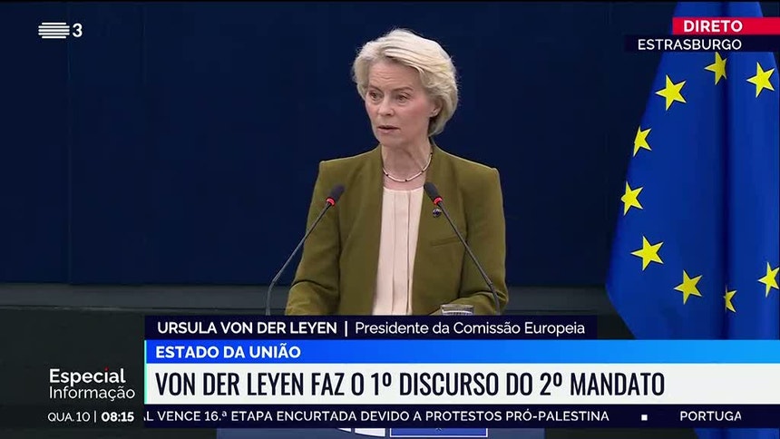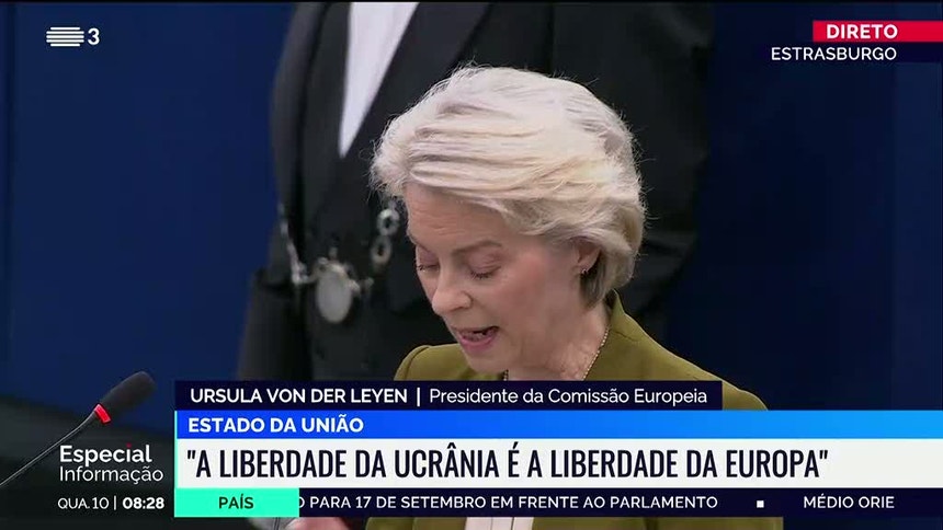No discurso em Estrasburgo, a responsável da Comissão Europeia defendeu também que a União Europeia deve encontrar uma nova forma de financiar a defesa da Ucrânia contra a Rússia.