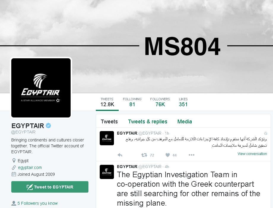 — EGYPTAIR (@EGYPTAIR) May 19, 2016
