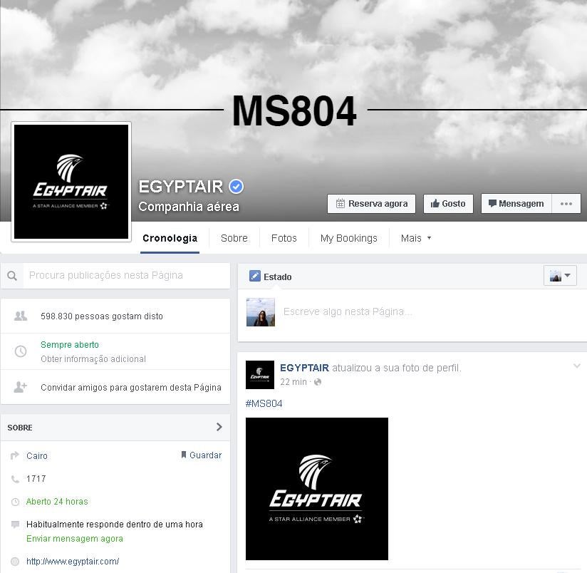 Na última hora, a companhia aérea alterou as fotografias de perfil e de capa no Twitter e Facebook. Nas duas redes sociais, o logo da EgyptAir surge num fundo negro. Uma forma simbólica que assinala o desaparecimento do voo MS804.